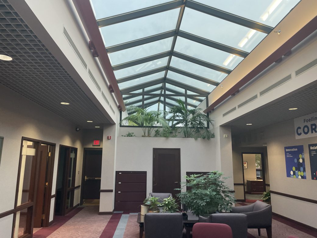 Before the renovation, the building had strong features, including large skylights meant to brighten the first floor. Over time, those views became blocked. Light no longer reached the places where people gathered or worked. The basement remained unfinished. Staff spaces needed to evolve to support a growing team.