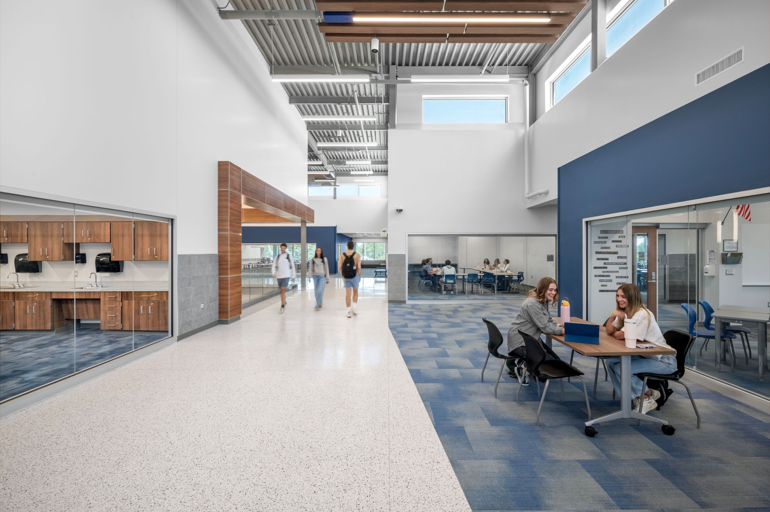 Key building elements include a 1,000-seat auditorium, a black-box theater, a 3,000-seat competition gymnasium, a dynamic media center, as well as the art, music, PE, support, and core learning spaces needed to empower twenty-first-century students. A daylit student commons will organize the building elements and become a center for collaboration.