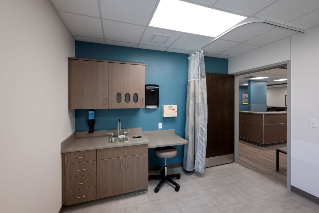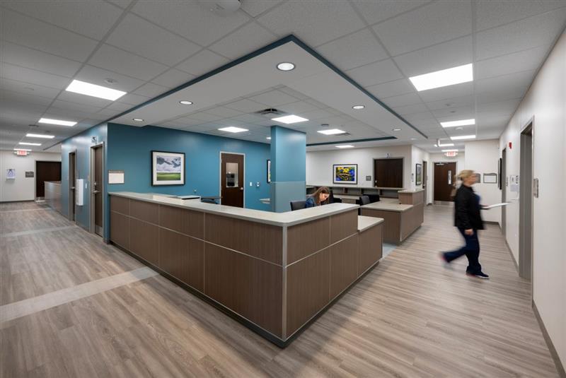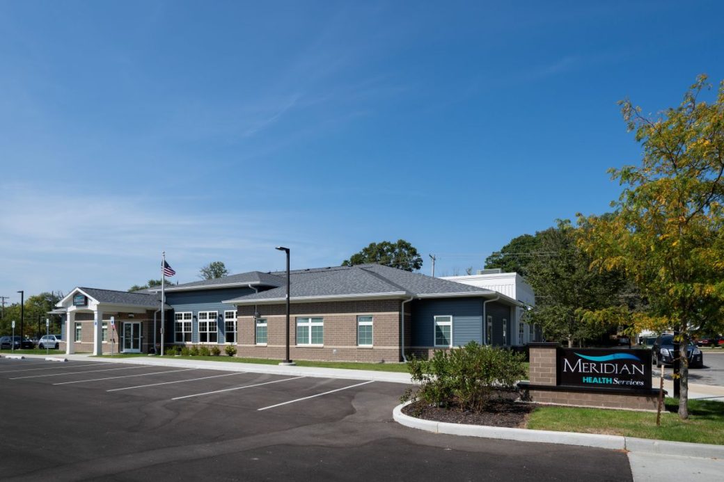 Meridian Health Services brings primary care and behavioral health together under one roof — reflecting the organization’s belief that the mind and body are best cared for in harmony. The design supports this integrated model of care through thoughtful connections between spaces with bright, welcoming public areas to encourage ease of access and comfort. Natural light, warm materials, and intuitive wayfinding contribute to an environment that feels more restorative than clinical, and therapy suites and exam rooms offer privacy and dignity for patients and providers alike. Located in proximity to the very people it serves, the exterior facade has a residential aesthetic that fits in with the surrounding neighborhood and exemplifies a community-based care model that integrates physical, mental, and social well-being.