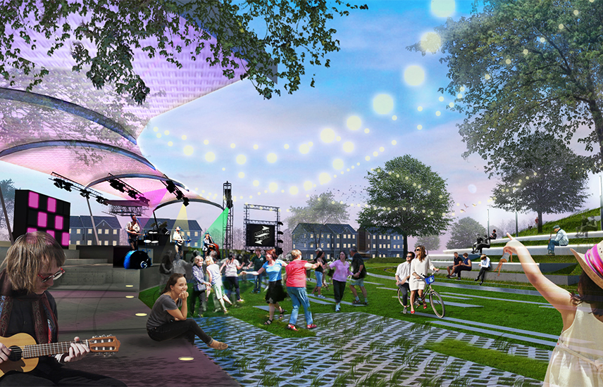 A small community has big ideas for rethinking their public park system. As part of a multi-disciplinary team, MKM assisted in leading a comprehensive planning effort for the Ossian community to explore how their existing 60-acre park could be redeveloped to foster future economic growth. Through a series of interactive community workshops, the plan focused on intergenerational activities and regional events including sporting fields, outdoor classrooms, a large amphitheater, an active adult playground, and a community pavilion. In addition to this, careful consideration was given to the potential of integrated housing and infrastructure within the heart of the park itself in an effort to transform the space into a vibrant, sustainable development.