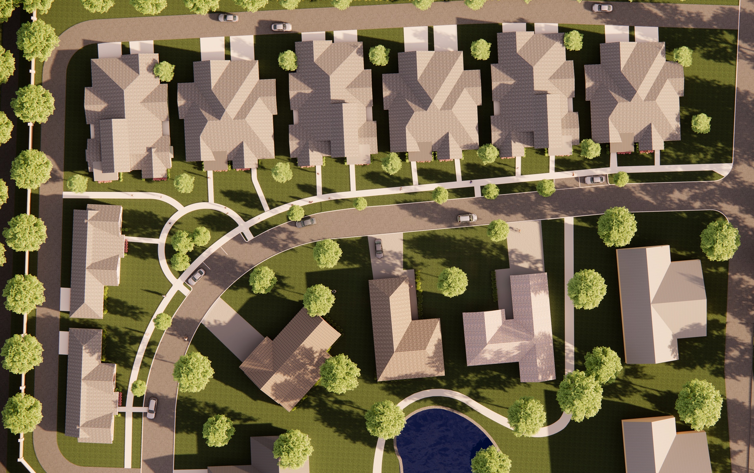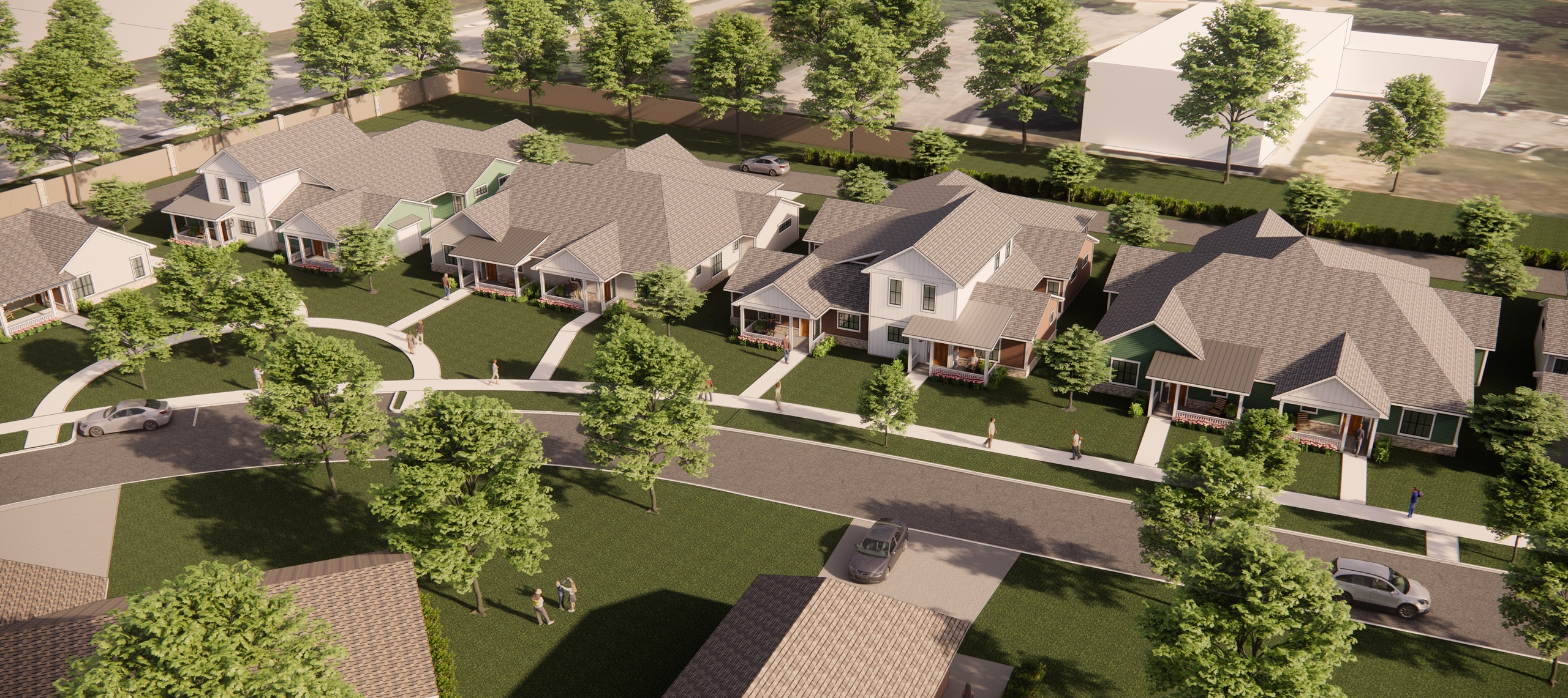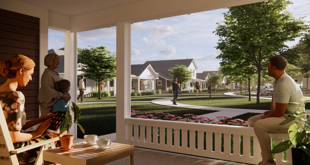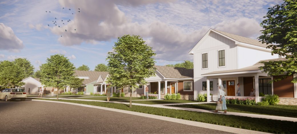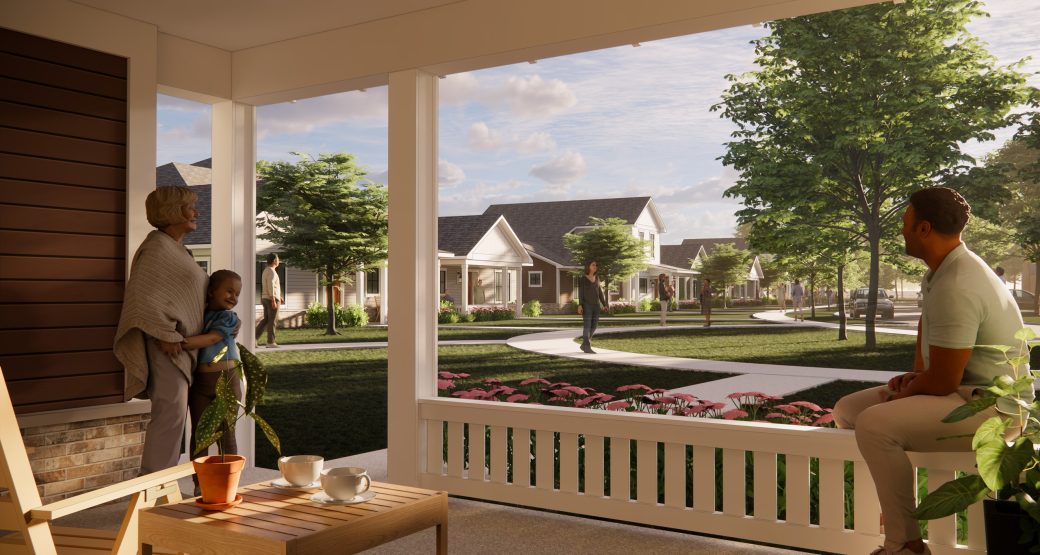 Designed to provide a walkable community within Holy Cross Village, the townhomes offer endless opportunities to interact with neighbors while walking the dog or sharing coffee on the front porch. Social connection is at the forefront while you enjoy a modern, refined lifestyle. Designed with a people-first mentality, the front porches are positioned within comfortable talking distance of the sidewalk, and the included two-car garages are relegated to the back. The Townhomes offer open floor plans, tall ceilings, and other stylish features.