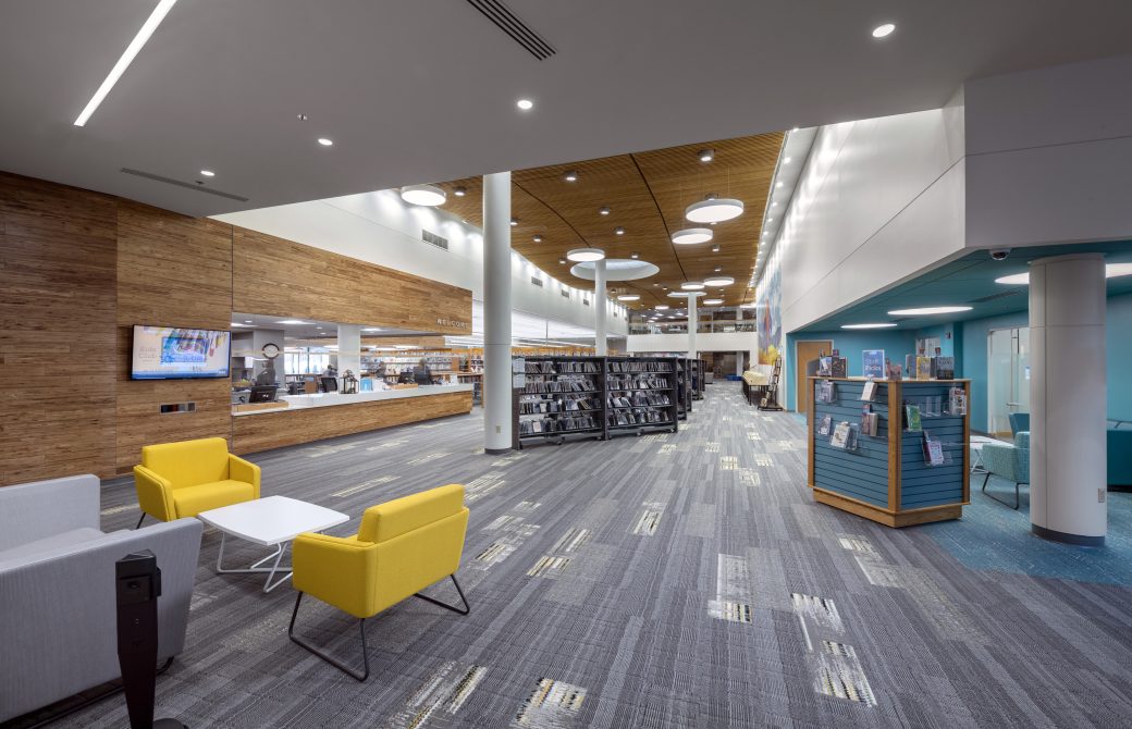 The project scope included a transformation of the main lobby space, seating areas, meeting rooms, administration and genealogy departments, and the children’s and teen departments. Also incorporated into the project are new circulation desks for all departments. Many existing spaces and resources were reallocated in the renovation for an increased focus on public engagement.